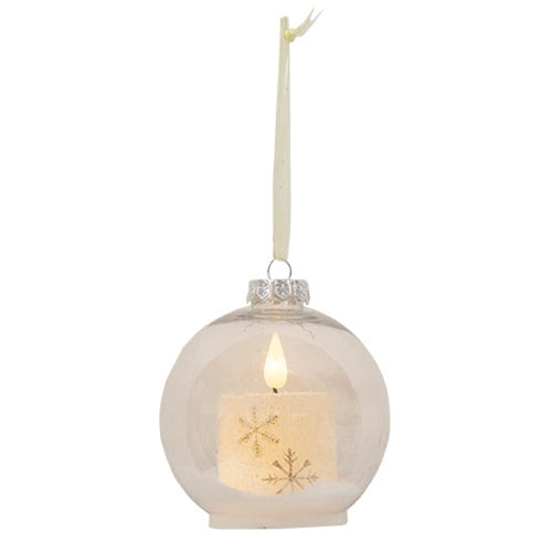 4" Bulb Ornament w/Gold Snowflake LED Candle