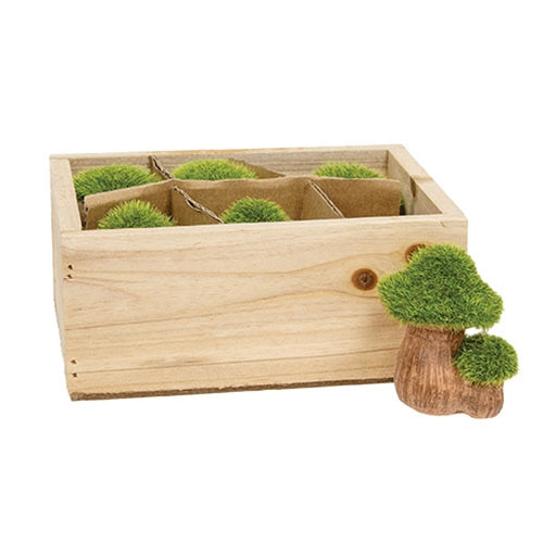 6/Set - Resin Mossy Mushrooms With Wooden Crate