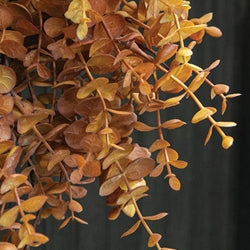 The Baby Eucalyptus Wreath makes a detailed addition to decorative wall or door displays. Light brown branches sprout from the brown-wrapped ring base and give the wreath a voluminous look. Detailed leaves in various sizes adorn the branches and have a dimensional mustard hue with pops of warm golden brown. Measures 7” in inner diameter by 18-20" in outer diameter.