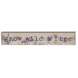 Please note: This Item features a variety of designs which are each sold individually (not as a set). Please add a note in your cart to indicate your preference. If no style is specified, one will be selected at random by our team (based on availability). Add a carefree touch to spring and summer displays with the Bloom Bright Mini Sticks. The wooden blocks feature an inspiring phrase printed over bright wildflower illustrations and a clean white background. The first block says “stay untamed” in taupe-colored type, with yellow blooms. The second says “grow wild & free” in purple type over pastel purple flowers. The last reads “bloom bright” in blue letters against blue, peach, and white blowers. Unfinished sides and distressed edges add a rustic touch. These sticks are ideal for displaying on a table, shelf, or riser during the spring or summer season.