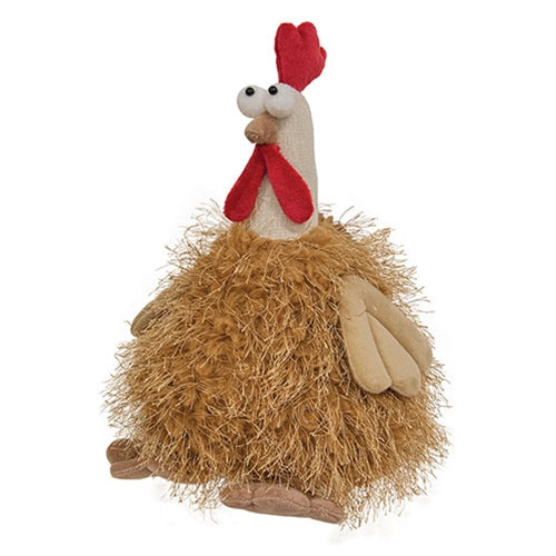 The Brown Fluffy Chicken adds a charming accent to country farmhouse decor. Made with textured plush design, the sitter features a fuzzy brown body and plush wings and legs. Wide, round eyes and bright red details make up the chicken’s unique and endearing expression. Measures 9” high by 7” wide by 7.5” deep.