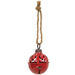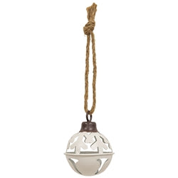 Christmas Tree Cutout Jingle Bell Ornaments are decorative metal jingle bells hung from jute rope. The bells feature a coat of solid paint in assorted colors of white, red, or green with wintry cutout design. Each contains a smaller bell inside to produce an audible jingle. Each measures 5" high by 3.5" in diameter. Please note: This Item features a variety of designs which are each sold individually (not as a set). Please add a note in your cart to indicate your preference. If no style is specified, one will be selected at random by our team.