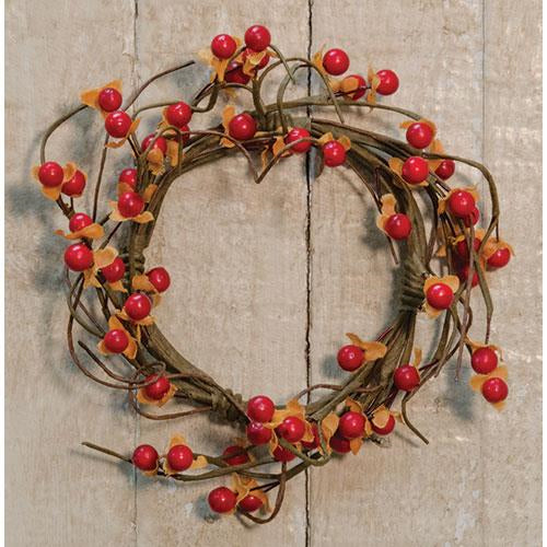 Country Bittersweet Ring features burnt orange berries with yellow accents attached to poseable brown twigs. It is 3½" in diameter.