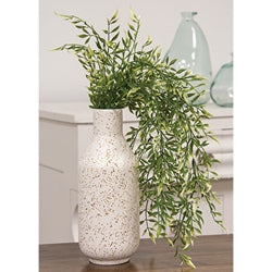The Cream Tipped Smilax Hanging Bush brings a fresh accent to springtime or anytime decor. The bush features a green stem and long, flowing branches covered with small leaves. Some leaves fade to lighter green for a realistic, dimensional look. Measures 33” long by 10” in diameter.