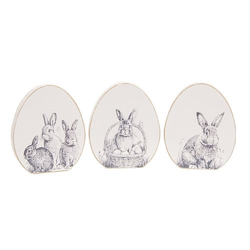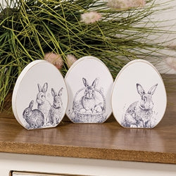 Easter Bunny Sketch Wooden Egg Block - 3 Asstd.