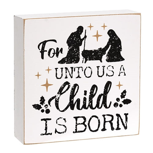 The For Unto Us Nativity Silhouette Box Sign makes a perfect addition to rustic or farmhouse holiday decor. Crafted from wood, the sign is painted white with a lightly distressed finish. The sign shows a depiction of the Nativity and weathered black text reading “for unto us a child is born.” Gold stars and black holly details accent the sign. An open back design allows for hanging or freestanding display. Measures 6” high by 6” wide by 1.5” deep.