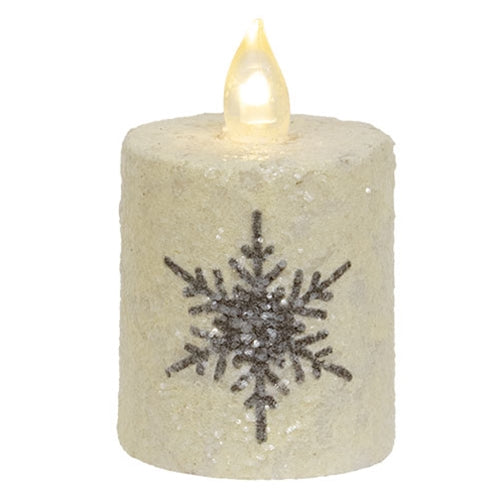 Glitter Snowflake Flicker Flame Timer Pillar 2.25" x 2.5"