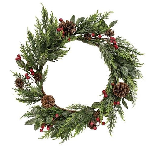 Glittered Cedar Wreath w/Pinecones & Berries
