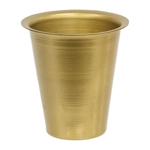 The Gold Metal Sugar Mold Cup brings an antique-inspired accent to decorative displays. Meant to fit a vintage-style sugar mold, the cup is made from metal with a tapered shape and a flat base. The cup has a versatile warm gold finish and can hold floral picks or other decor. Measures 2.25” high by 2.5” in diameter.