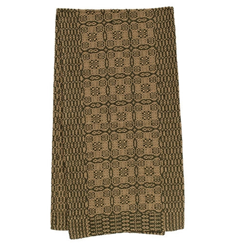 The Green & Linen Saratoga Long Runner brings soft color and texture for a cozy feeling at the table. This runner is woven from green and a natural linen color with a detailed geometric pattern and a contrasting border. Add this runner to a dining table or buffet and add a decorative centerpiece or household items for a lovely rustic touch any time of year. Measures 56 in. long by 14 in. wide.