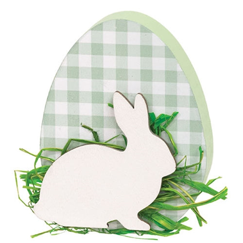 Green & White Buffalo Check Easter Egg Sitter w/Bunny