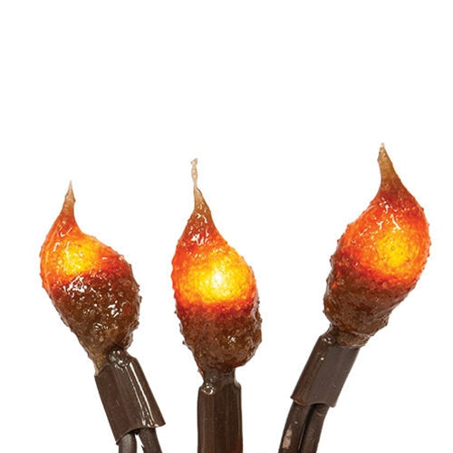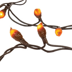 Grubby Silicone Teeny Lights are a set of silicone-dipped bulbs strung along a brown cord to bring soft light to rustic decor. This strand features 50 brown silicone bulbs and a standard two-prong plug. The small bulbs can be wrapped around a tree, placed in a bottle, or draped around a window. The 20-count strand measures 5 feet long. Hand-dipped in the USA!