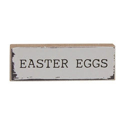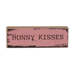 Please note: This Item features a variety of designs which are each sold individually (not as a set). Please add a note in your cart to indicate your preference. If no style is specified, one will be selected at random by our team. Hop This Way Tiny Mini Sticks are charming wooden accents for Easter farmhouse decor. Made from wood, the decorative sticks feature freestanding horizontal design. The sticks have painted fronts and unfinished sides with a weathered finish. One stick is painted yellow and reads "hop this way," one is white and reads "Easter eggs," and one is pink and reads "bunny kisses." Each measures 1" high by 3" wide by .5" deep.