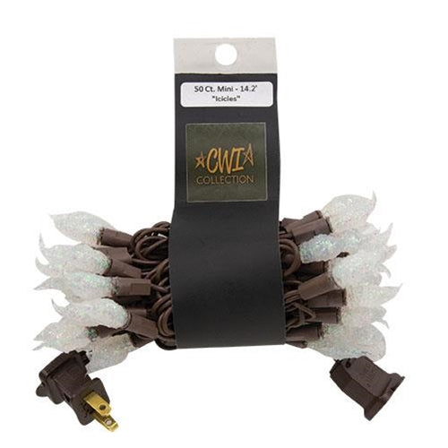 The Icicles Light Set is a cozy, wintry electric light strand featuring 50 hand-dipped bulbs, covered in a glittering, icy white silicone texture. The strand has a brown cord and goes perfectly with Winter and Christmas decor, whether displayed on a tree, wrapped around a garland, or strung around a window, mantle, or wall. These decorative lights are for indoor use only, and if one bulb burns out, the rest will still light, making for a long-lasting display. 50-count strand measures 14.2 feet long. Made in the USA!