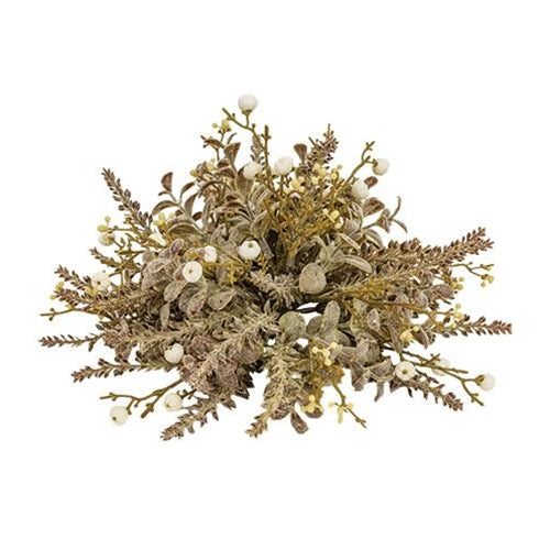 Pumpkin Berry Half Sphere, Cream features plastic cream-colored buds and cream-colored pumpkin berries on a green plastic base. Half sphere has textured leaves and greenery and it looks great in bowls, baskets, and trays and measures 9" in diameter.
