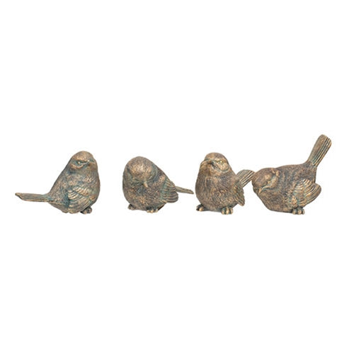 Resin Distressed Bronze Finish Bird Figurine 4 Asstd.