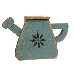 Rustic Wood Watering Can Twig Boxes bring a seasonal touch to springtime shelf or tabletop decor. Crafted from wood, the watering cans have chunky cutout design complete with a twig box perfect for holding florals or decorative picks. Available in assorted deep teal, mustard, and cream colors, the watering cans each feature a handle, spout, and black painted star detail. Each measures 11.25” high by 18” wide by 4.5” deep. Made in the USA! Florals not included. Please note: This Item features a variety of designs which are each sold individually (not as a set). Please add a note in your cart to indicate your preference. If no style is specified, one will be selected at random by our team.