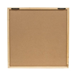 The Santa with Christmas Tree Mirror is a vintage inspired wall art piece crafted with seasonal Christmas style. With a distressed silver mirror background, the art features printed design depicting Santa in his classic suit, complete with a fluffy white beard. He’s shown holding a mini pine tree decorated with red bulbs, pinecones, and a red poinsettia. A light, natural wood frame holds the print and 2 sawtooth hangers allow for easy display. Measures 16” high by 16” wide by 1” deep.