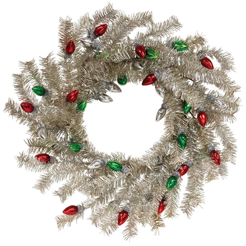 Silver Tinsel & Holiday Bulbs Wreath - 24"