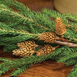 The Soft Touch Austrian Pine Garland brings a nature inspired accent to indoor decor. A brown stem serves as the base of the garland, sprouting long brown branches. One looped end allows for easy hanging display on a wall or mantel or the edge of a shelf or tabletop. Soft green pine needles cover each branch, and clusters of light brown pinecones complete the look. Measures 72” long by 16” wide by .5” deep.