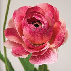 The Tropic Pink Peony Spray brings a bright floral accent to spring, summer, or everyday decor. The spray features a long green stem with a textured finish and dimensional coloring for a realistic look. A trio of detailed green leaves with a glossy finish sprout from the branches along with a pair of realistic flowers. The flowers feature soft petals with detailed dark pink, light pink, and pale green design. Measures 23” high by 6” wide by 2.5” deep.