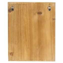 The Weathered Wood Trick or Treat Witch Sign adds a vintage inspired accent to spooky seasonal wall decor. Crafted from wood, the rectangular sign features a rustic imperfect texture and an orange painted background. A large white crescent moon fills the sky, accented by small black stars and bats. Black design depicts an asymmetrical house standing next to tombstones, bare trees, and pumpkins. A bare tree painted in dark orange adds a dimensional look to the scene, and a witch is shown flying over the moon on a broom. Black and white text in a bold mix of fonts reads “trick or treat” on the sign, and a distressed finish gives a weathered look. The sign comes ready to display with 2 D-ring hangers. Measures 10” high by 8” wide by .5” deep.