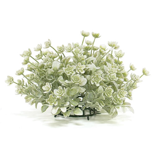 The Dusk Lavender Buds Half Sphere is a decorative floral accent with a half-sphere shape and natural green base. The half-sphere is filled with soft, dusty lamb’s ear greenery and features whimsical lavender floral blooms. Display this sphere sitting on a bowl, tray, pedestal, basket, or other tabletop vessel to bring a sweet and simple touch to the home during Spring. Measures 10” in diameter.