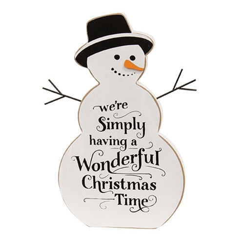 Wonderful Christmas Time Wooden Snowman Sitter - 10"H
